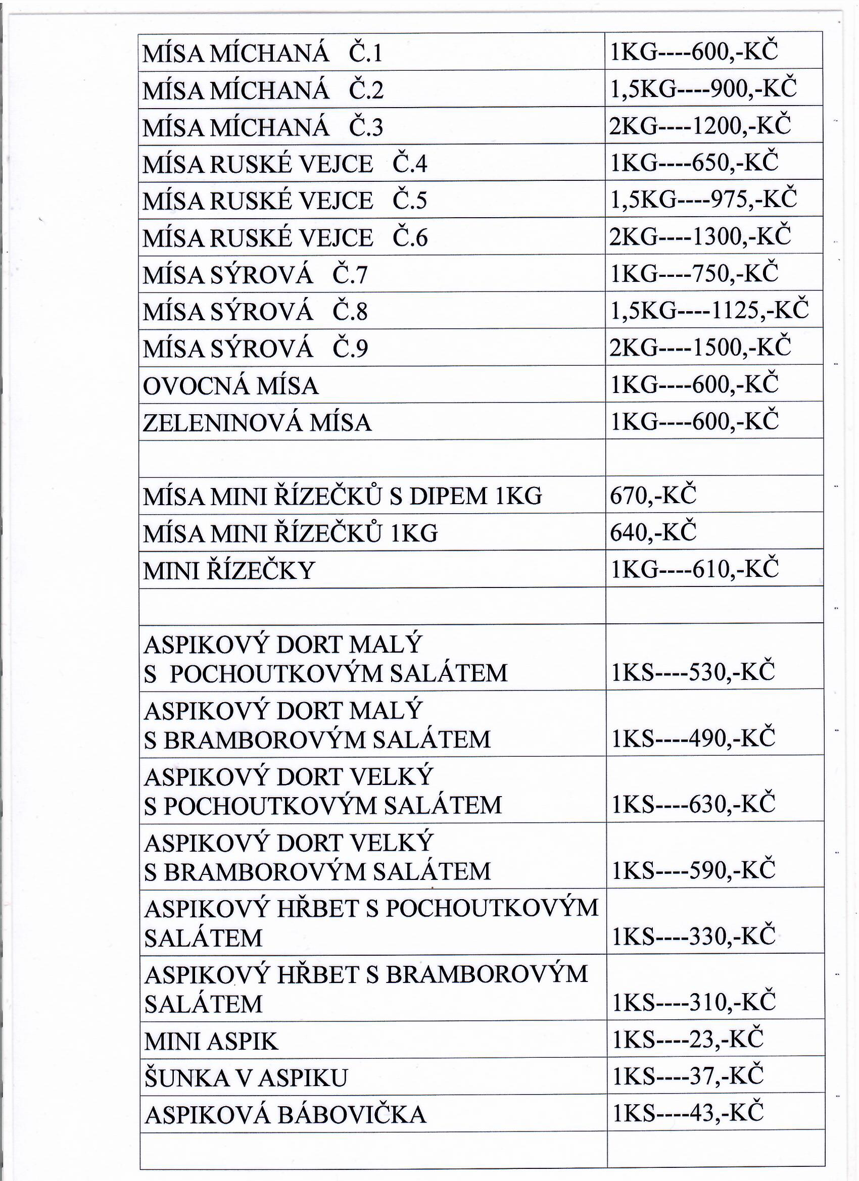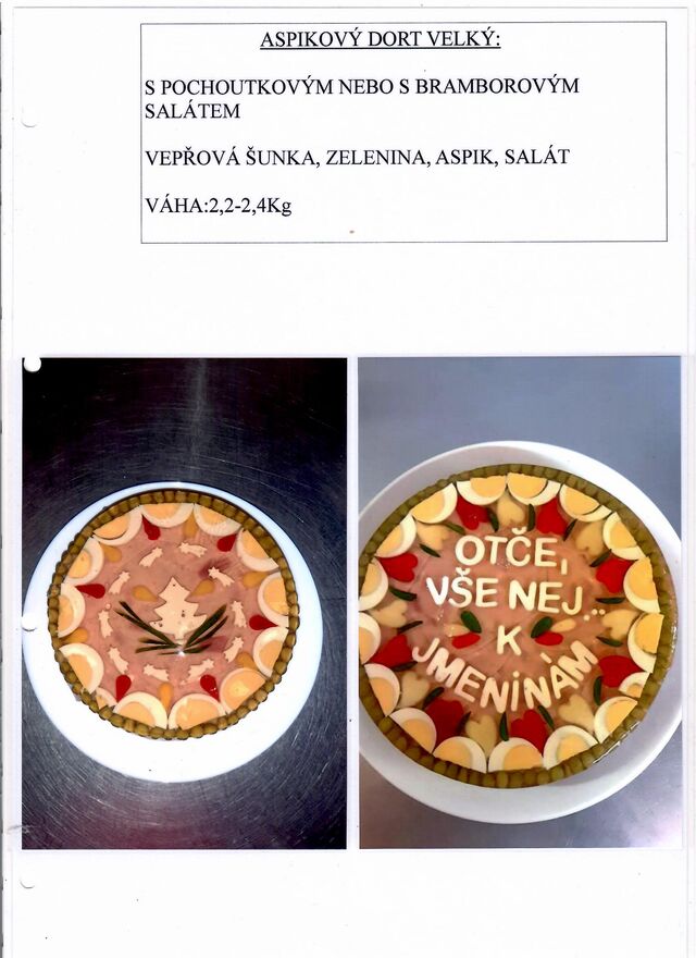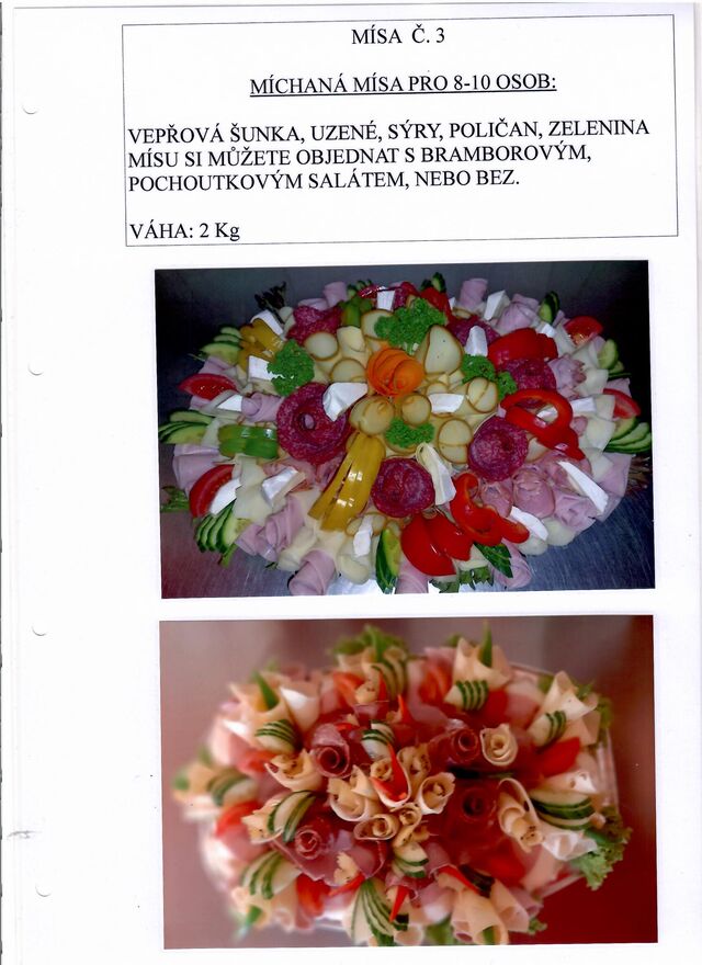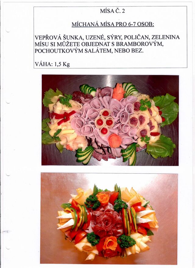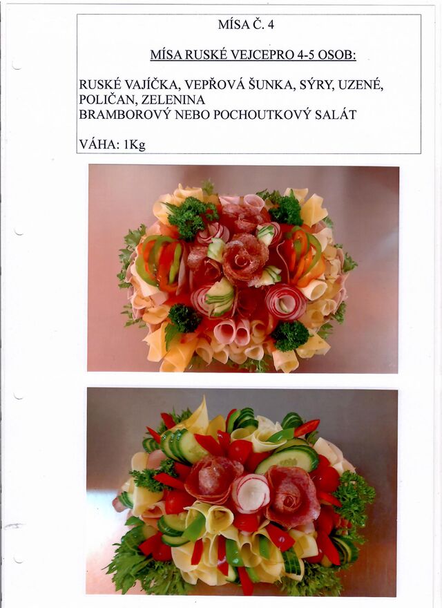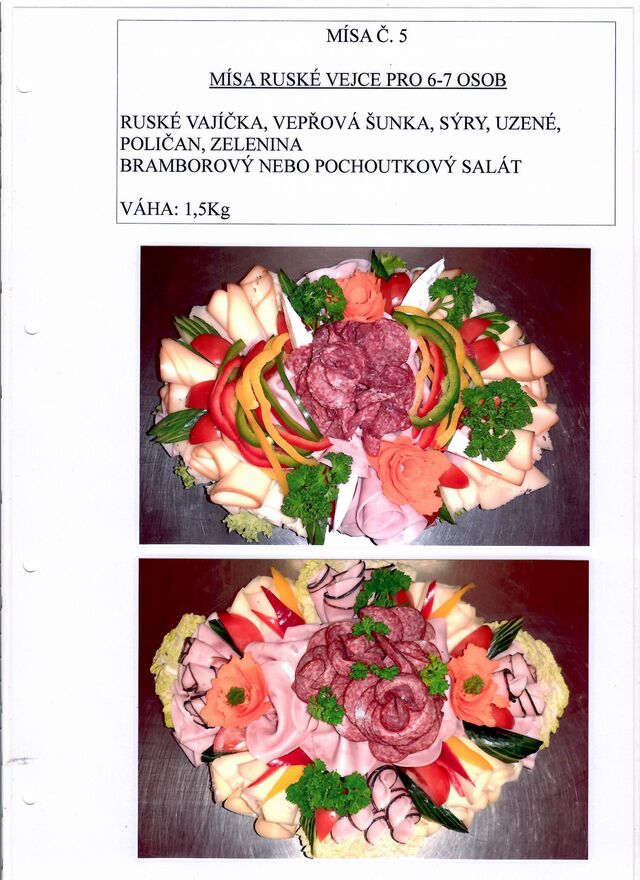 Jsme firma s dlouholetou tradicí zabývající se studenou výrobou. V naší nabídce naleznete široký výběr hlavně lahůdkářských výrobků např. chlebíčky, aspiky, obložené mísy, které pro vás čerstvé vyrábíme každý den. Vedle lahůdkářských výrobků nabízíme zákusky a mini zákusky, něco málo z teplé kuchyně, řízky, mini řízky, karbanátky...a jiné